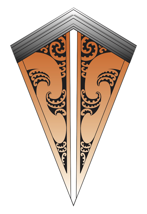 Mātauranga and Ako or Knowledge and Learning is depicted by taniko (weaving patterns). These reflect Tane’s challenging ascent to Te Toi o Ngā Rangi (the twelve plains of understanding) where he retrieved the three baskets of knowledge. Like Tane, we strive to accept the challenges of gaining and retaining knowledge, and sharing that.