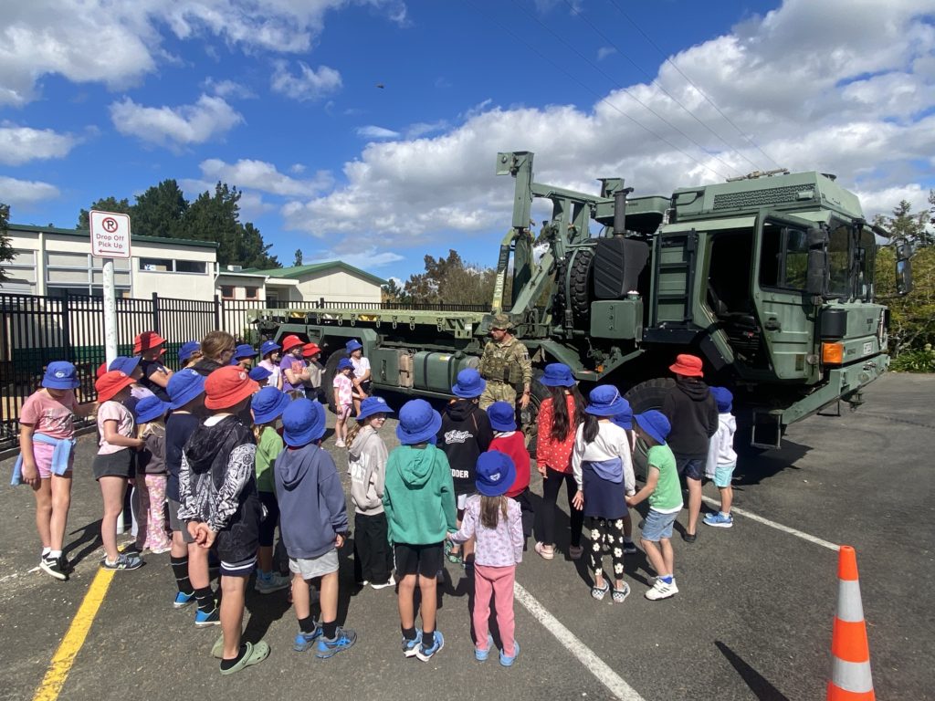 We were able to make the most of it by holding an Anzac Service just before lunch today with the support of Hunter (Dad of Topher and Ben). We have a few military parents, so it’s always nice to have them come in to share what they do for their job. So they came in style bringing a few variations of the MHOV (Medium Heavy Operations Vehicle) as you can see above. Thanks to Sarita and Raniera (Parents of Ihaia and Keita), Ken (Dad of Mackenzie), Hannah (Mum of Leo) Casey (Dad of Griffin) and Scotty from the NZDF.
