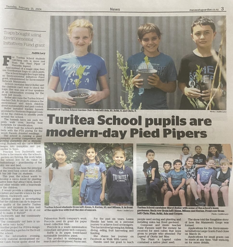 You might have seen our Garden Club made the Manawatū Guardian yesterday as shown above. Check out the beautiful writeup that showcases all the amazing mahi (work) that Meryl does in and around our kura. She models our uara of Kaitiakitanga (environment) and shows that we care and is educating our tamariki to care too.