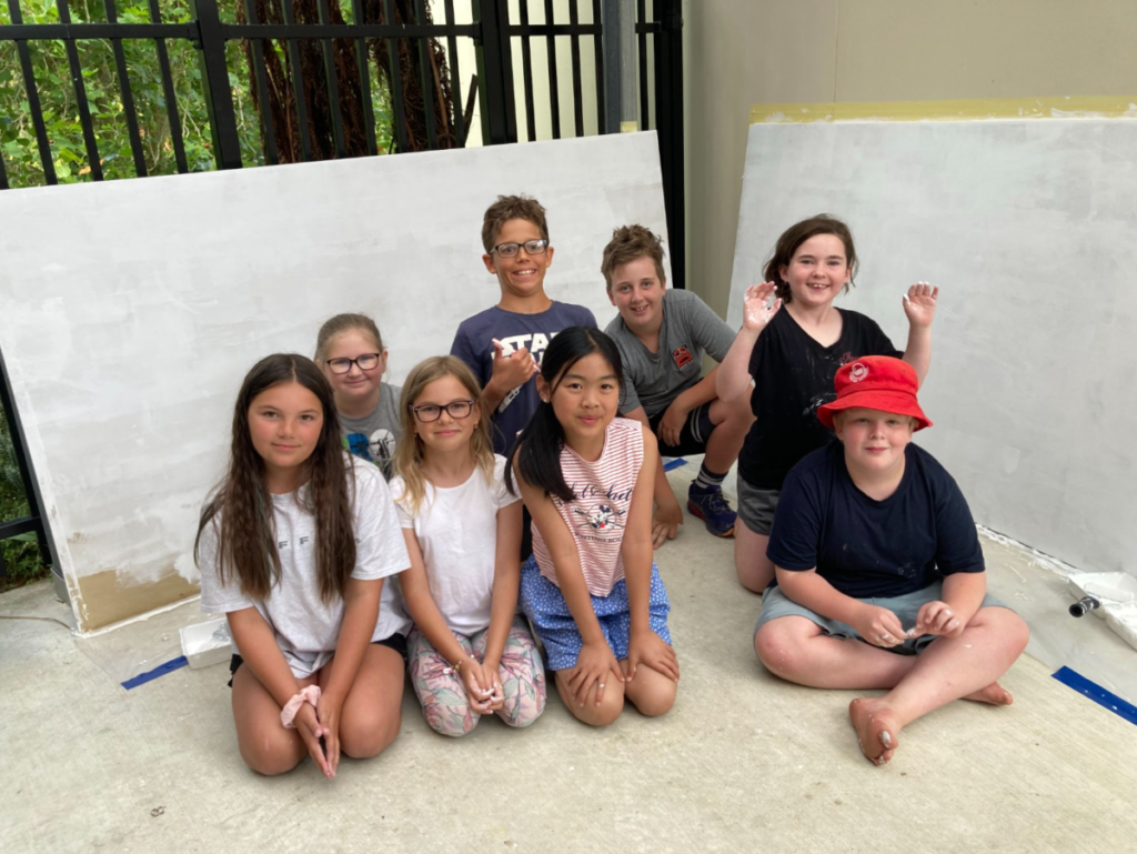 This week, Carolyn Dodd has come in to work with our Year 6 students to upgrade our mural on the court side of the wall where our flagpole is. She is becoming renowned in the area for helping schools create beautiful murals with ākonga (students) and the kura at the centre. The team above prepped the boards ready to paint on and each of our Year 6’s will have some part to play in the many aspects of this process. You can see some of her work at Russell Street and Central Normal schools. She will be with us for the next few weeks working with us and we hope to have this finished and mounted by the end of term for the grand reveal. Huge thanks to Carolyn and the PTA for funding this project.