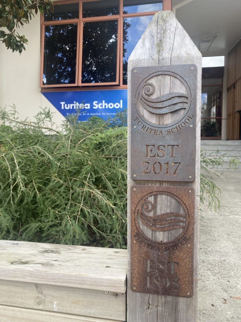 Hasn’t there been a temperature drop the last few mornings? Luckily the sun has been shining lately giving us some gorgeous days at kura. Hopefully you noticed our new sign on the post out the front of the office? Darian deRidder, a former parent of the school made the original version underneath, so Julie got in touch with him to make a new version to show our name correction from ‘Tiritea to Turitea’. His son Hunter, who works for him, came and personally delivered it and enjoyed having a look around at all the changes since his time here. If you were unaware, the name correction even made the news! Check out the pic below. We want our tamariki to start learning about this as it is an important part of our kura history.