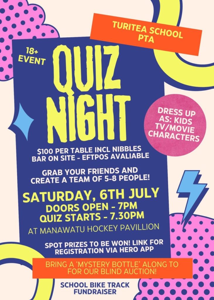 We have spaces for up to three more teams at our upcoming quiz night which is coming up on Saturday 6th July at the Manawatū Hockey Pavilion at 7pm. Register your team here if you haven’t got round to it. Looking forward to seeing you all at this event.