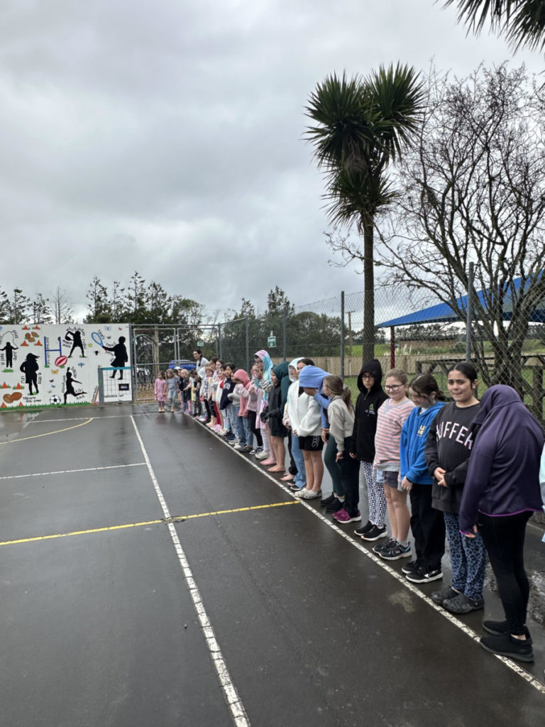 Apologies for ‘blowing up your phones’ this week for communicating our Whānau Maths Week challenges that we had every day. It was so great to see kids rushing into school in the morning with their family’s answers to the previous day’s challenge to put in our prize box. Our purpose was to engage our tamariki with an estimation activity they completed as a class and then have a problem to solve at home to get kids talking about maths with you all. We hope you have enjoyed engaging in this with your child and haven’t seen it as extra ‘homework.’ As you can see below, we have had a lot of rekareka (fun) with this as a whole school, showcasing the importance of our uara (value) of whanaungatanga. Today’s challenge was if all the students lined up, ‘Which line will be longer? Boys or Girls?’ It was a contentious one as both took lines took this very seriously…