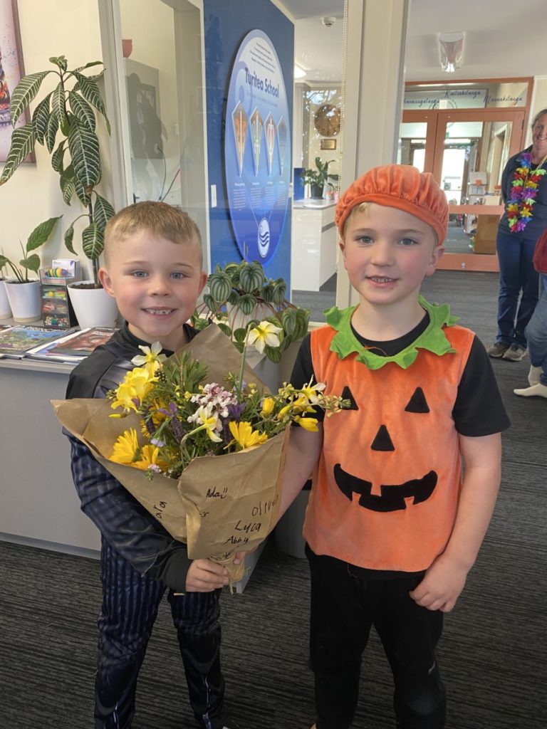One of the best parts of my job is when I get kids to come and make a visit to the office to share something with me. I love hearing the excited knock at the office window and hearing them ask Julie ‘Can we please see Troy?’ Today we have had lots of visitors… First I had Freddie and Charlie bring me a bunch of wildflowers picked by the Garden Club for my birthday. I also had Olivia from Kahikatea come and share with me some of the amazing writing she did with Faye yesterday, as you can see below. Then this afternoon, we had James and Kate, who are ex-Turitea kids come back to visit their kura from their childhood. They enjoyed the walk down memory lane and found lots of things from their past (including Trish who used to teach James back in the day). It is always cool to meet former students and hear about their fond memories of Turitea.