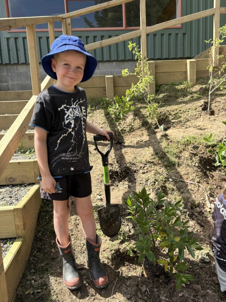 Yesterday we had our Tree Planting Day at school, where every student planted a native tree in our Micro Forest area. Over the holidays, Jordon and Max from eHaus completed our boardwalk giving us access to this area. The vision and passion for this project was driven by Meryl and came to life with help from the Lion Foundation and Woolworths Grant for Good. She is an extremely humble person and the whakataukī (proverb) comes to mind about her: ‘Kāore te kumara e kōrero ana mo tōna ake reka. The kumara does not speak of its own sweetness.’