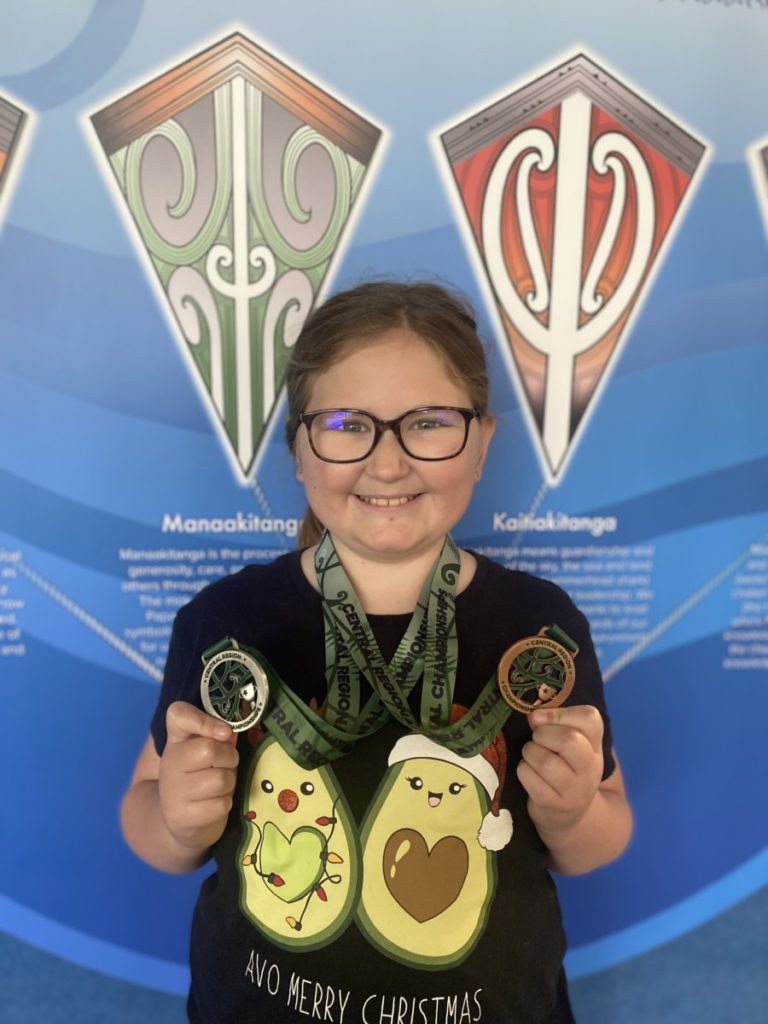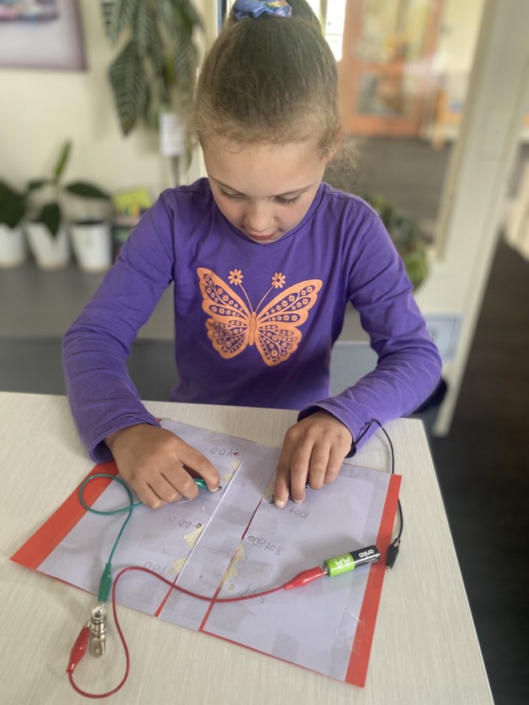 This week, I have been fortunate to have a lot of ākonga (students) come and share their successes with me. I had Ada who is pictured above holding a copy of Versions Tuarima, which is the City Libraries fifth edition of the popular anthology of local writers. How cool that her submission was included this year with her story about ‘a library with no books.’ I had the tamariki from Pōhutukawa invite me to their class to show me their kemu (games) that they made with Faye. As you can see below, Lihmé is showing me her game that tests your maths knowledge by connecting the question to the correct answer with wires to light up the lightbulb if you are right. I also had Olivia (below) share the medals she won at a recent Tae Kwon Do competition over the weekend. She came second in the power punch and third in sparring. Ka rawe koutou! (Awesome everyone).